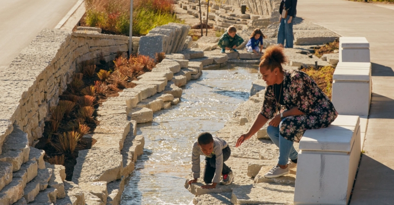 Caption: Town Branch Commons in Lexington, Kentucky transformed a previously car-centric corridor into a multi-modal, environmentally responsive greenway. Ima…