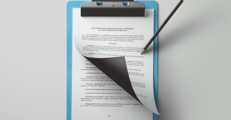 This park operations and maintenance agreement outlines the roles and responsibilities of The Trail Foundation and the City in maintaining a trail.